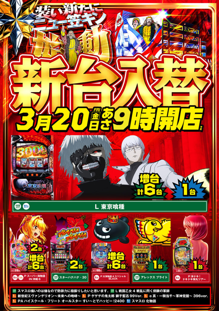 | 定休日 | 新台入替の前日は休業いたします |